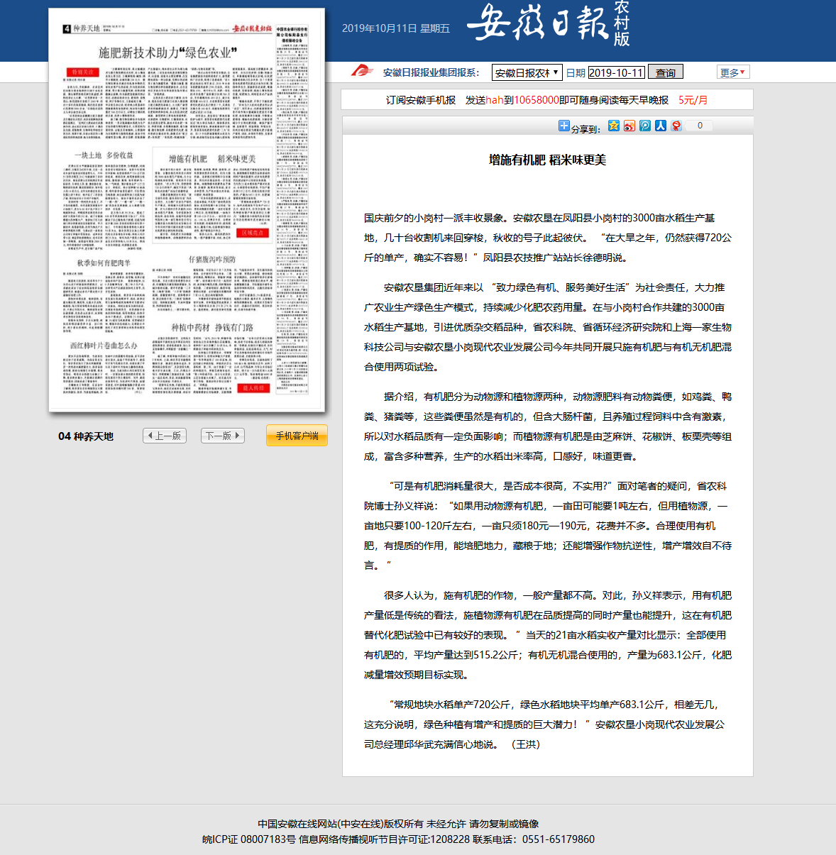 安徽日报农村版:增施有机肥 稻米味更美