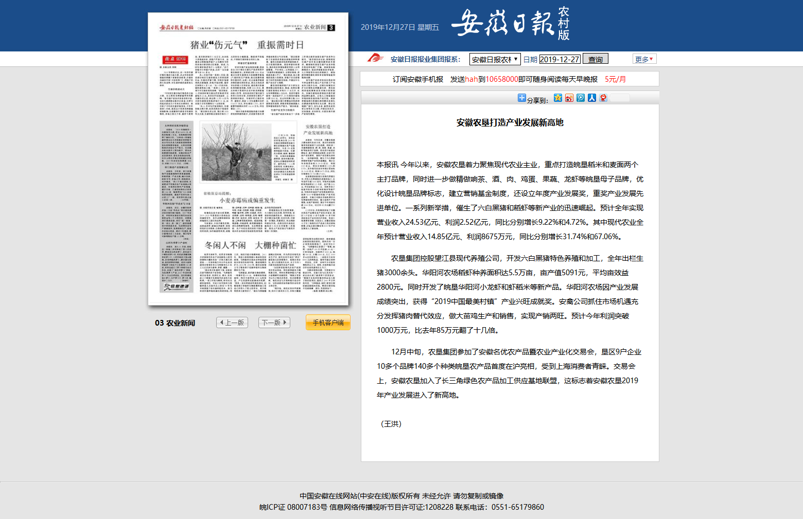 安徽日报农村版:安徽农垦打造产业发展新高地