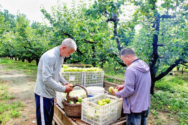 梨园内,翠绿的皇冠梨挂满枝头,采摘水果的职工挥汗如雨,一丝不苟地严把水果质量,仔细地采摘和认真分拣每一个梨子,确保每个梨子让客户和消费者满意。在包装车间,包装水果的职工正细心地将皇冠梨分类、挑选、套袋、装箱,包装好的皇冠梨通过物流源源不断地运往全国各地。