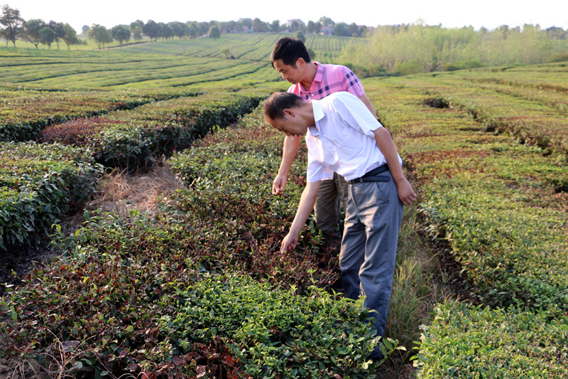 829,宣城市、宣州区民政局相关负责人到敬亭山茶场核查茶园旱情,场领导耿兴龙陪同。