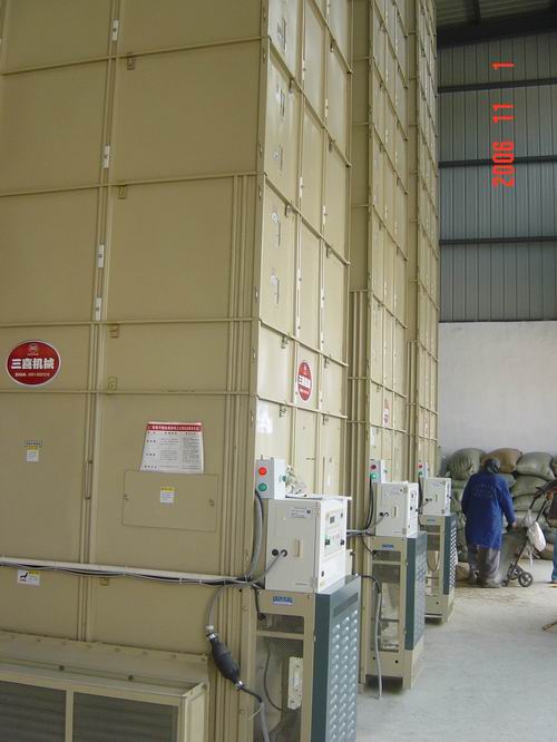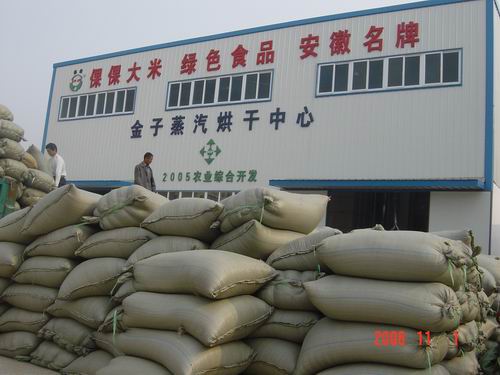 为了扩大绿色食品“倮倮”牌大米的生产经营规模,有效解决企业加工源粮不足的矛盾,今年,大圹圩农场利用品牌优势,积极与周边乡镇400多农户签定了6000亩优质稻种植和收购合同。为了解决秋季订单粮收储问题,农场领导未雨绸缪,筹资数十万元,在米厂添置了粮食烘干设备及地磅等配套设施,并要求施工单位抓紧安装调试,以确保在秋收中发挥作用。目前,正值订单水稻收购之际,这套烘干设备每天可烘干20点以上水份的稻谷近30吨左右,不仅有效解决了订单农户晒粮条件差、粮食水份高、质量难以保证的矛盾,而也为企业履行合同,进一步发展订单农业提供了有力保证。目前,“倮倮”米厂已烘干入库稻谷100多万公斤。图为:正在安排粮食烘干的场面。