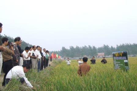 观摩会上,朱启升教授介绍了“绿旱一号”的育成情况。省农科院王振荣研究员介绍了配套除草剂的使用情况。承担试种“绿旱一号”任务的淮南农场、肥东县农技推广中心和龙亢农场分别介绍了该品种的生产示范情况。