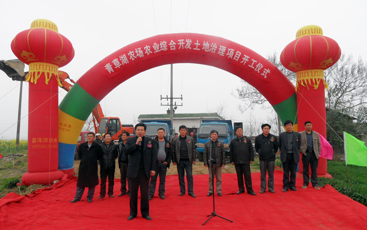 4月2日,敬亭山茶场2010年国家农业综合开发(青草湖分场)土地治理项目开工仪式隆重举行。敬亭山茶场领导马振辉、陈雪松以及青草湖分场和施工、监理等单位代表参加仪式。