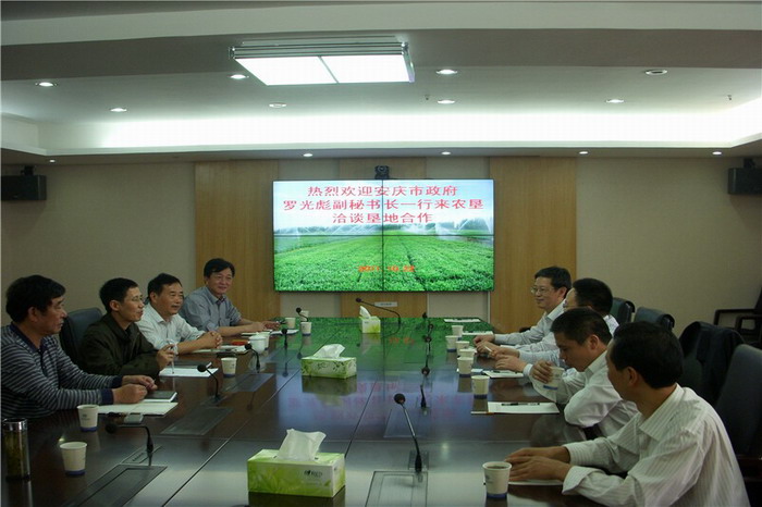 10月22日下午,受安庆市政府委托,市政府副秘书长罗光彪、商务局副局长姚慧一行来到省农垦集团,就深化垦地合作以及皖河农场合作开发等议题进行了友好洽谈。省农垦集团副总经理陈仁虎出席洽谈会并作讲话,集团公司经济开发合作部、土地建设规划部和皖河农场负责同志参加了会谈。