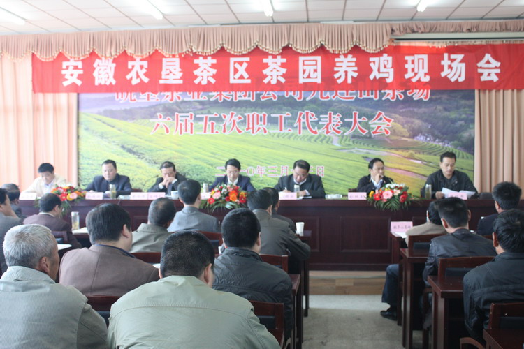 10月26日,安徽农垦茶园养鸡现场会在九连山茶场召开,省农垦集团副总经理、皖垦茶业集团董事长刘超,安徽农业大学动物科学院教授耿照玉,集团公司农水科技部、皖垦茶业集团、茶区总场及各茶场负责人和养鸡户代表60余人参加了会议。