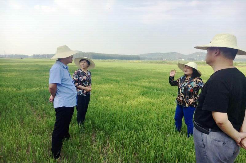 724淮南农场总农艺师王玉叶受邀到东风湖农场,下田到户进行旱改水技术指导,有针对性地向一、三分场种植户给出了水稻水肥管理、农药合理使用等田管方案,现场为职工答疑解惑,解决了困扰他们的许多技术问题。