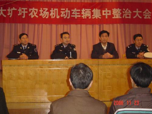 为了深入开展场容场貌专项整治工作,进一步加大机动车辆管理力度,彻底解决场部机动车辆乱停乱放问题,维护场内交通秩序和场部整体形象,构建平安、和谐农场社会,11月23日,大圹圩农场协同天长市公安局、天长市交通局等有关部门开展了一次机动车辆集中整治活动。农场场容场貌专项整治工作领导小组成员参加了本次活动。分管此项工作的施广庆副场长在整治大会上作了动员讲话。