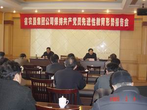 3月4日下午,集团公司先教办召开保持共产党员先 进性教育形势报告会,邀请了省委党校胡东升教授 做了报告。参加听会的有机关集团公司领导及机关 全体在职党员、离退休党员代表、在肥直属企事业 单位领导班子成员。