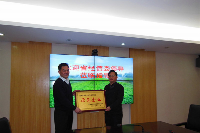 为大力推进安徽信息化与工业化融合典型示范推广,由省经信委牵头组织评选的全省100户“两化融合示范企业”于日前新鲜出炉,省农垦集团名列第二。1月16日,省经信委信息化推进处处长石象斌一行前来授牌并调研指导了农垦信息化建设工作。集团公司副总经理李家堂及农业产业化处负责人参加会谈。