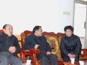 1月13日,省农林水工会夏副主席及吴、杨两位主 任一行来到华阳河农场,对困难职工进行慰问,表 达了上级工会组织对农场职工的关心和爱护。夏主 席一行还不辞辛劳,到华阳河农场一场看望了特困 职工。(图中左一为夏主席、左二为农场工会主席 汪登松、右一为吴主任)